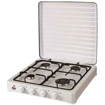 COCINA DE ALTA CALIDAD,ACABADO EN ESMALTE VITRIFICADO,PARRILLA Y QUEMADOR DESMONTABLE,4 QUEMADORES,TAPA PROTECTORA EXTRAÍBLE,GAS BUTANO/PROPANO,HOMOLOGADO,MEDIDAS: 510 X 510 X 120 MM