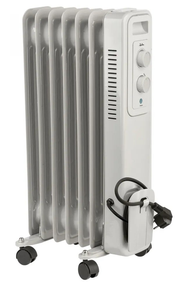 RADIADOR DE ACEITE DE 7 ELEMENTOS,POTENCIA: 1.500 W,SELECTOR DE 3 POTENCIAS,TERMOSTATO REGULABLE Y PILOTO LUMINOSO,PROTECTOR TERMICO DE SEGURIDAD,ALOJAMIENTO PARA EL CABLE,ASA DE TRANSPORTE,DISPOSITIV
