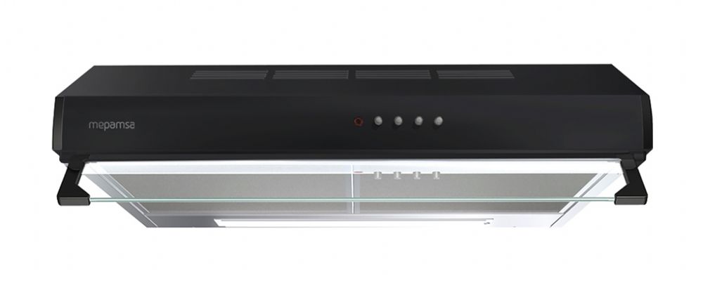 Frente soft inox antihuella,Mandos pulsantes,2 lámparas halógenas,Tres velocidades,Piloto indicativo de funcionamiento,Filtros metálicos curvos,Válvula antirretorno,Posibilidad de funcionamiento e