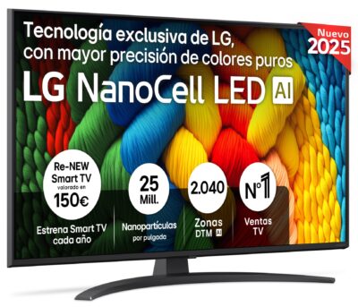 Resolución de la pantalla: 3840 x 2160,Potencia estimada RMS: 20,Wi-Fi: Sí,Versión de sistema operativo: 25,Pulgadas: 43,Tecnología del panel: NanoCell,Resolución: 4K Ultra HD,Smart TV: Sí,Siste