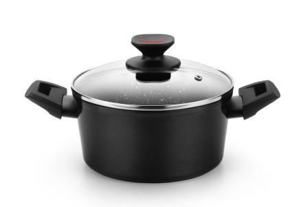 DIÁMETRO: 16 CM,CAPACIDAD: 0,8L,CUERPO: ALUMINIO FUNDIDO,TAPA: VIDRIO TEMPLADO,POMO TAPA: BAQUELITA TERMO AISLANTE,ASAS: SILICONA TERMO AISLANTE,RECUBRIMIENTO ANTIADHERENTE: TEFLON PLATINUM PLUS,ESPE