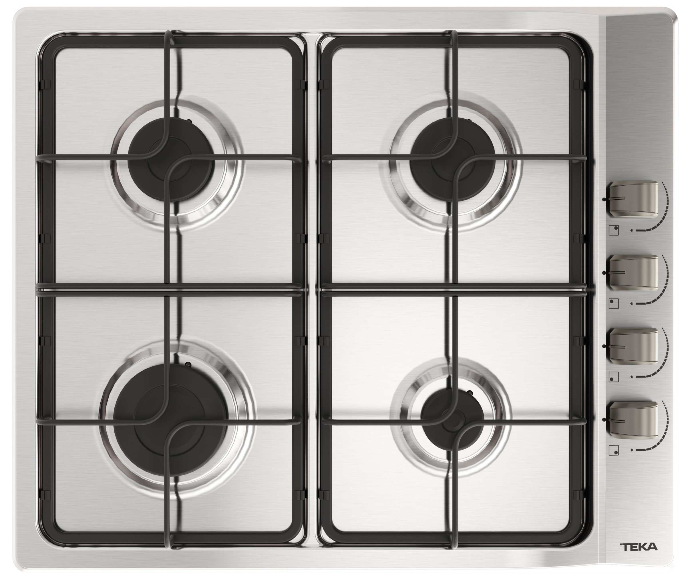 PLACA DE COCCION A GAS NATURAL, - 1 QUEMADOR AUXILIAR DE 1,00 kW, - 2 QUEMADORES SEMIRAPIDOS DE 1,75 kW, - 1 QUEMADOR RAPIDO DE 3,00 kW,AUTOENCENDIDO INTEGRADO EN QUEMADOR Y ACCIONADO POR CADA MANDO,S